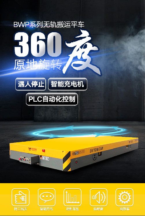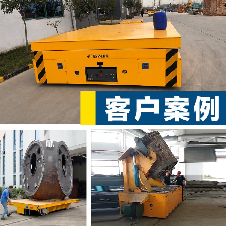 售后服务 1. 电动平车、轨道平车的承重安全系数不低于50% . 2、根据用户的具体情况,免费为用户设计辅助装置或基础图,井提供技术服务或图纸资料。免费为用户安装、调试直到安装、调试合格,达到用户, 3、公司的产品,实行"三包”服务。 4、在接到用户关于产品质量的来电、来函或口头通知后,售后服务人员一定在4小时内作出答复,48小时内赶到现场,紧急问题24小时内赶到现场。 无轨电动平车 我公司生产的无轨电动平车能够适应多种不同作业工况,能为客户提供合理省心的搬运解决方案。