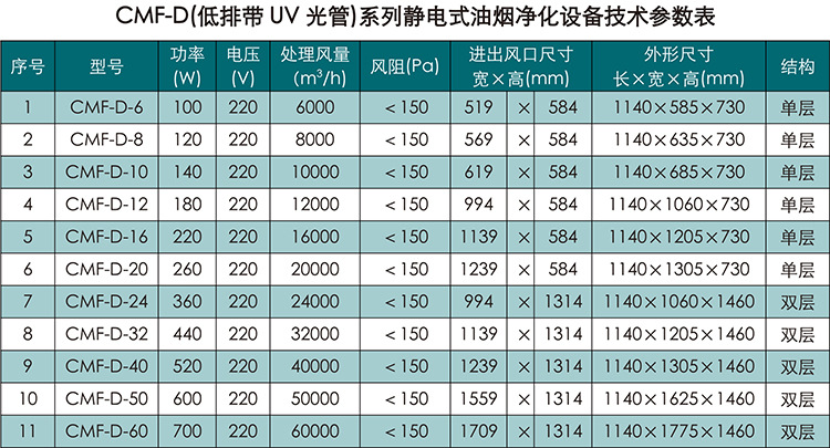 康美风CMF-D/CMF-G型系列静电式饮食业油烟净化设备是我司根据国家环境保护行业标准有关技术要求及技术规范研发的环保产品,该产品能有效地去除油烟,消除部分异味从而达到净化空气质量,有效减轻空气环境污染问题。