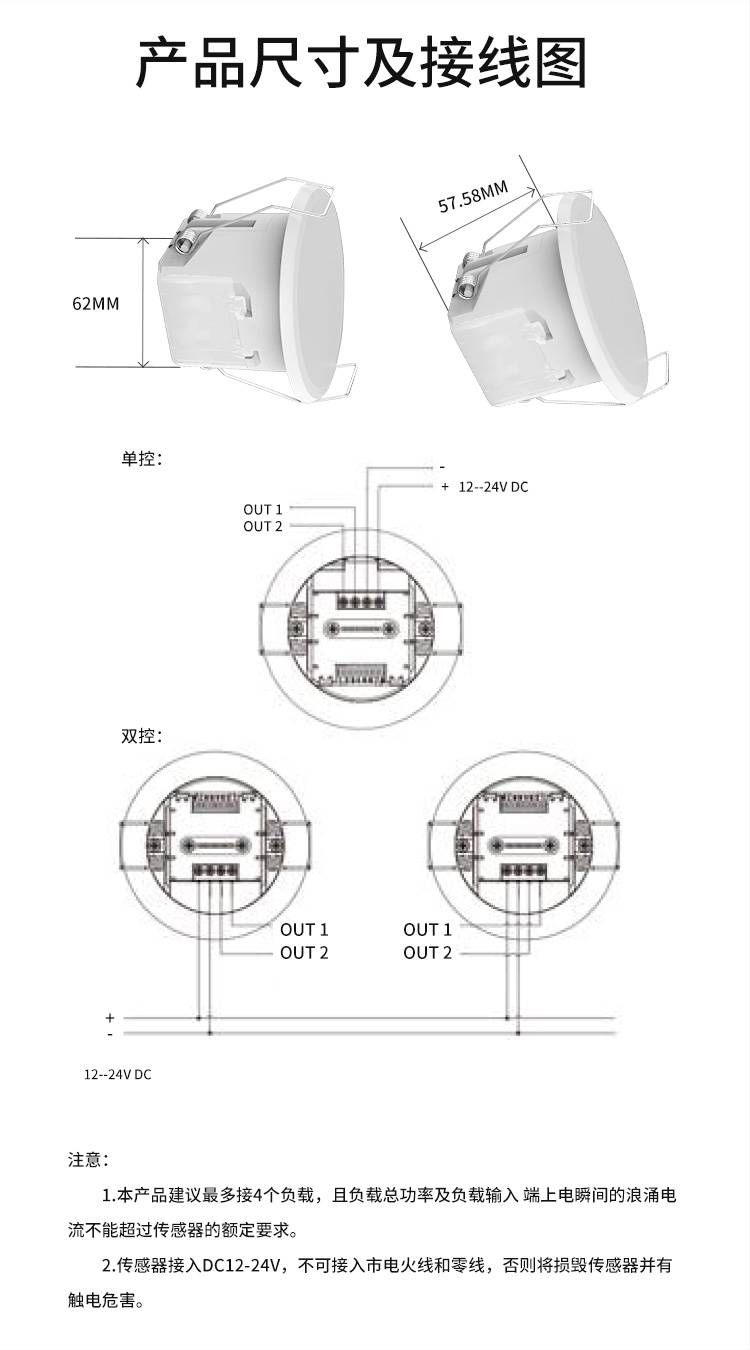 | 探测角度120° | 应用智能家居/智能商业/智慧安防/智慧照明等 |